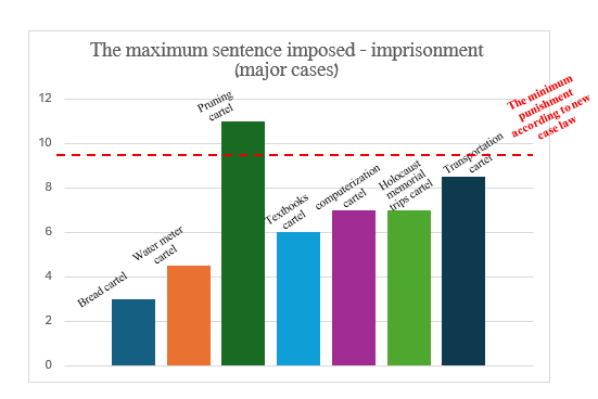 Indeed, more than two decades have passed since the Israeli Competition Authority broke the “psychological barrier” and succeeded in securing actual prison sentences for cartel offenses in the “Tile Cartel” case. At that time, the principle was established that the appropriate punishment for cartel offenses is imprisonment. However, the Authority struggled to implement this strict judicial rhetoric into lengthy prison sentences in specific cases. The pinnacle was the “Bread Cartel” case (2017), in which the Supreme Court reduced the actual imprisonment term from 12 months to merely 3 months. Since that ruling, a sentence exceeding the current lower bound of 9 months has been imposed only once